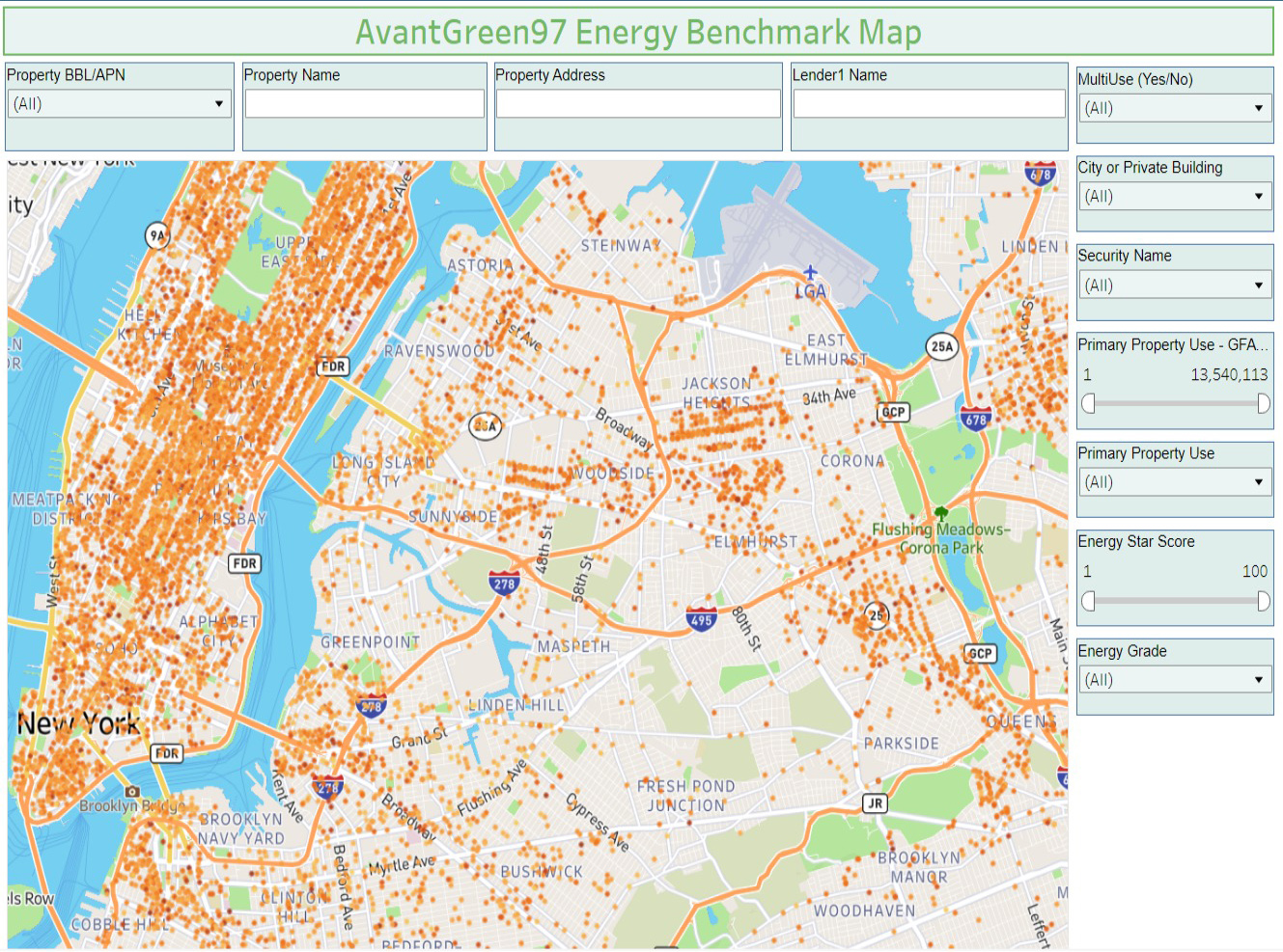 Avant Green 97 connects building owners, management companies and primary lien holders with Pace financing originators, engineers and architects specializing in carbon reduction retrofits, and Green building manufacturers to help them reduce their carbon footprint. We can facilitate these introductions by instantiating data on buildings covered by local laws and other municipal regulatory vehicles that aim to reduce overall emissions by capping a property’s energy consumption based on its use type.
